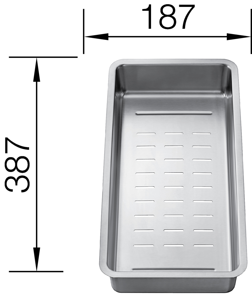 Коландер из нержавеющей стали Blanco Divon II (231396) идеально подходит для моек из нержавеющей стали серии Etagon. Перфорированное дно позволяет использовать коландер для мытья овощей и фруктов, а также для обсушивания посуды.